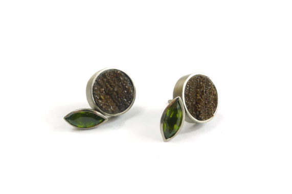 Earrings_Praline_fossilwood_peridot_WG.750°°°
